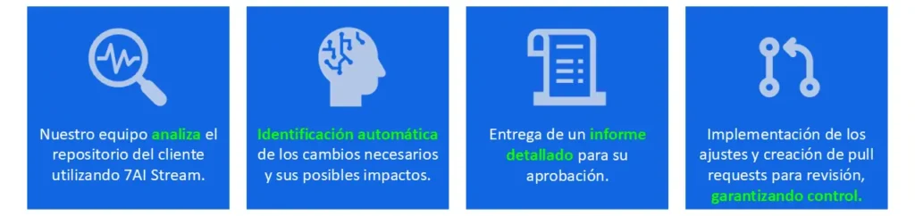 7AI Stream va más allá de la automatización, ofreciendo una solución integrada que garantiza una transición fluida y eficiente. Nuestros especialistas se encargan de cada etapa, incluyendo: